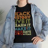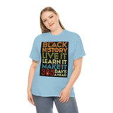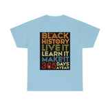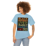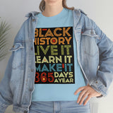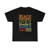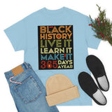 Black History, Live it, Learn it, Make it 365 t-shirt, Black cotton Tee