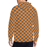 Orange Checkered All Over Print Full Zip Hoodie for Men (Model H14)