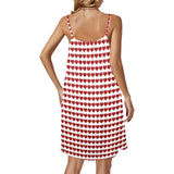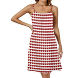 Red Hearts Drawstring Neck Sleeveless Dress (Model D68)