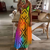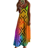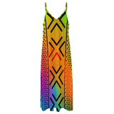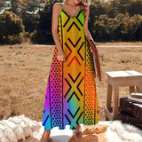 Spaghetti Strap Ankle-Length Dress, Rainbow African Print