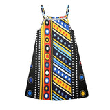 Colorful African Print Drawstring Neck Sleeveless Dress (Model D68)