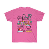 This unisex ultra cotton tee is a classic. Quality cotton construction means that designs are sure to shine. The shoulders are tapped for a good upper-body fit. There are no side seams, ensuring a clean, unbroken flow. The collar has ribbed knitting for improved elasticity. The materials that went into this product are sustainably sourced and economically friendly. .: 100% Cotton (fiber content may vary for different colors) .: Medium fabric (6.0 oz/yd² (203 g/m²)) .: Classic fit .: Tear-away label .: Runs bigger than usual