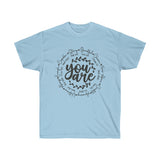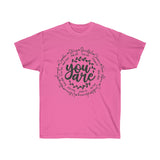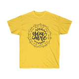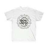 This unisex ultra cotton tee is a classic. Quality cotton construction means that designs are sure to shine. The shoulders are tapped for a good upper-body fit. There are no side seams, ensuring a clean, unbroken flow. The collar has ribbed knitting for improved elasticity. The materials that went into this product are sustainably sourced and economically friendly. .: 100% Cotton (fiber content may vary for different colors) .: Medium fabric (6.0 oz/yd² (203 g/m²)) .: Classic fit .: Tear-away label .: Runs bigger than usual