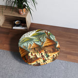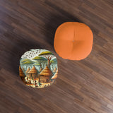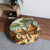 Floor Pillow, Tufted Round Floor Pillow, Reading Pillow, African Print Pillow, African Village