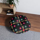 Floor Pillow, Tufted Round Floor Pillow, Reading Pillow, African Print Pillow, Aztec Design Pillow