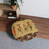 Tufted Floor Pillow, Round Floor Pillow, Reading Pillow, Bogolan African Print Pillow